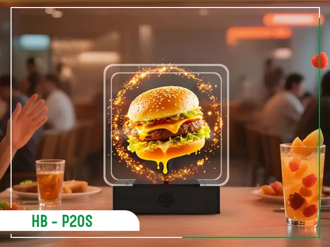 Menü, kampanya ve ürün fotoğrafları 3D hologram şeklinde gösterilebilir.