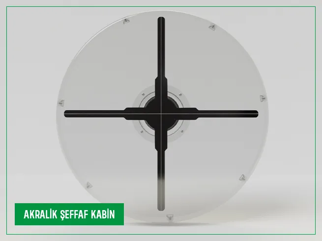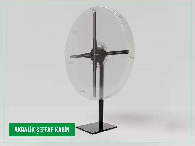 Akrilik Şeffaf 3D Hologram Fan Kabin iç ve dış mekan kullanımına uygun olarak üretilmektedir.